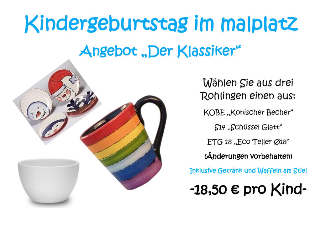 Das Angebot umfasst eine Malanleitung, ein Getränk, Waffeln am Stiel und eine kleine Überraschung für das Geburtstagskind.